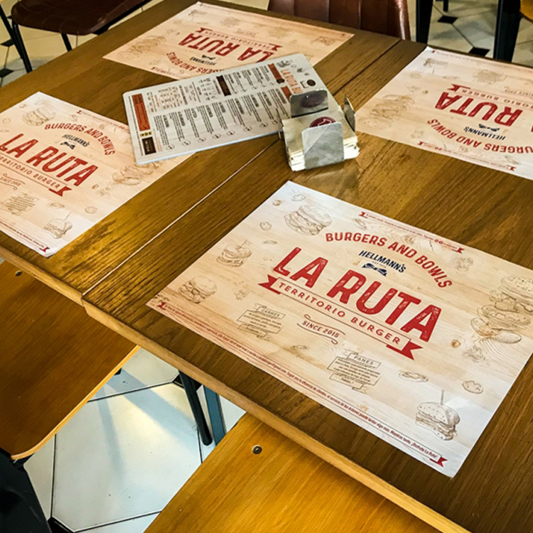 Superficies impresas que protegen y decoran la mesa, reforzando la imagen de marca durante el servicio. Son una excelente alternativa para comunicar promociones, menús o mensajes institucionales.