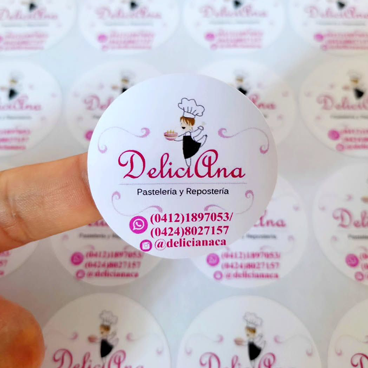 Etiquetas y stickers personalizados con acabados de alta definición, troquelados en la forma deseada. Se trabaja en vinil blanco, transparente o de colores sólidos, ofrecen gran versatilidad para branding y promociones.